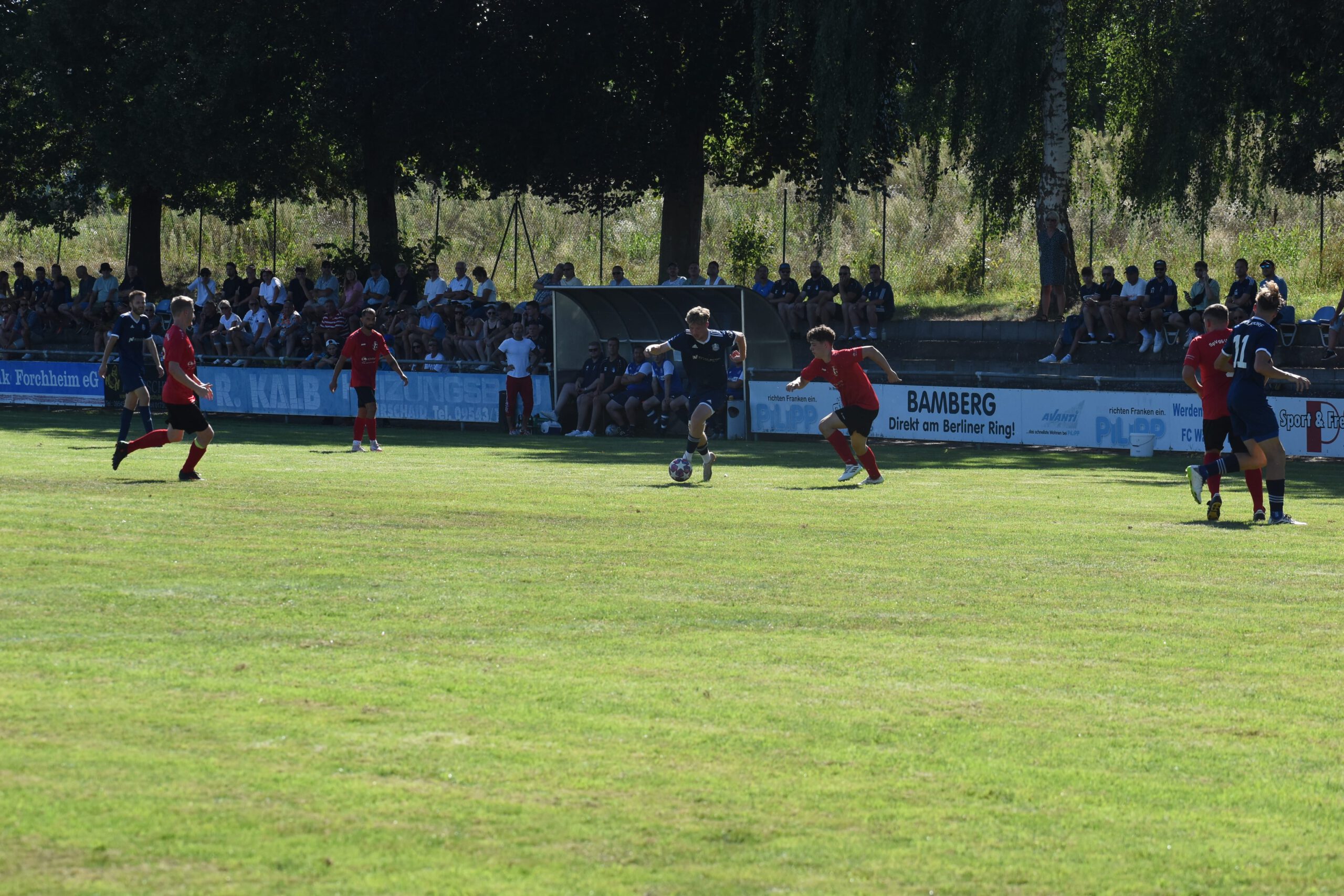Bei weiterhin sommerlichen Temperaturen starteten die Gäste nach dem Seitenwechsel besser in den zweiten Spielabschnitt. Schon nach fünf Minuten gab es die erste große Möglichkeit für die in rot gekleideten Uehlfelder, doch Velicu verzog in aussichtsreicher Position. Die Hausherren waren wieder um Spielkontrolle bemüht, auch wenn ihnen das zeitweise noch nicht so gut gelang wie im ersten Durchgang. Trotz mehrerer guter Spielzüge und Einschussmöglichkeiten sollte der erlösende Siegtreffer für die Heimelf nicht mehr fallen und so mussten sich beide Mannschaften mit dem letztlich gerechten Unentschieden begnügen.